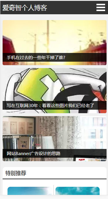 个人博客模板主题《绅士》,搭配灵感来源于站长袁志蒙的个人博客,多骨鱼博客主要参考了其布局.html5+css3,手机导航栏使用了js.代码精简.首页重点突出图片展示区域,以及图文特别推荐.